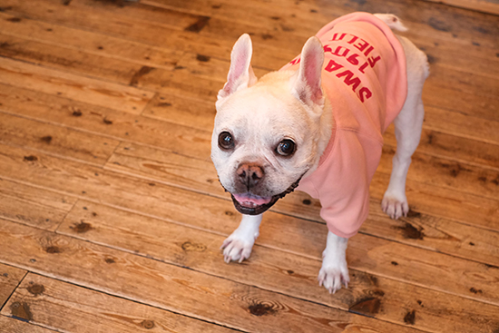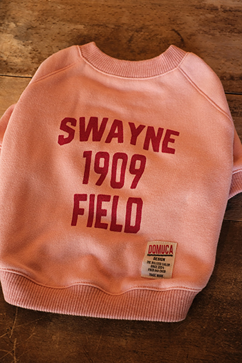 パステルピンクのスウェットに