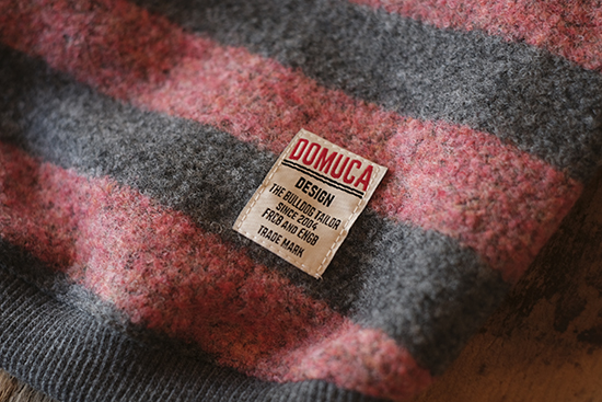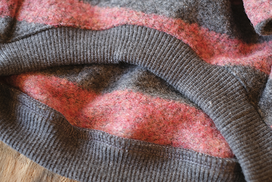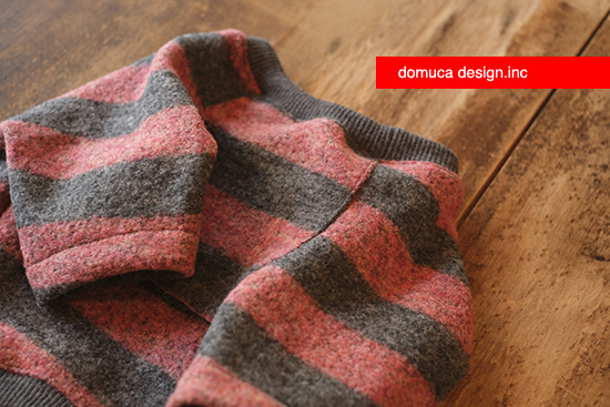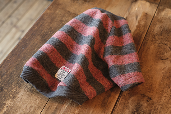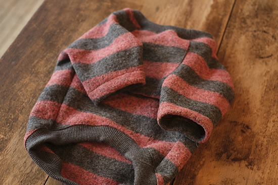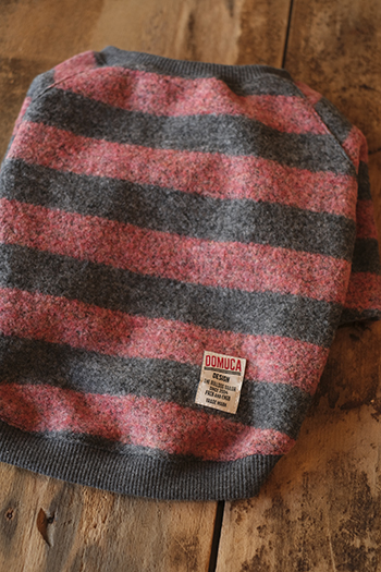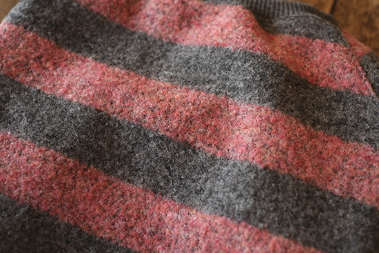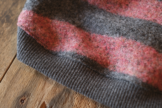 淡い朱赤とグレイの太ボーダー柄のミックスカラーで