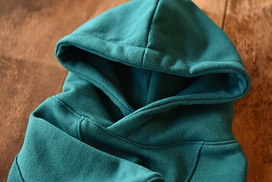 中肉厚で、程良い伸縮性のあるスウェットパーカ。