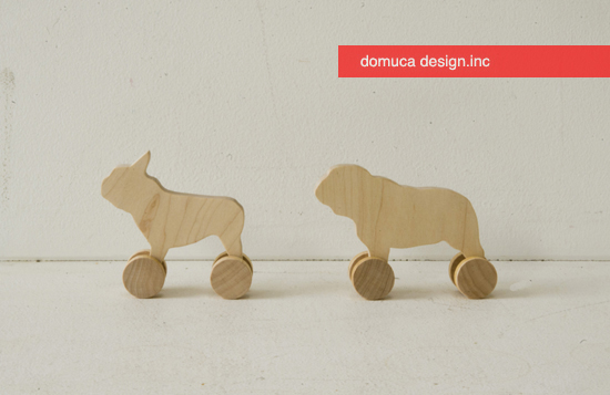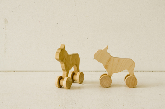 フレンチブルドッグとブルドッグのシルエット型木工インテリア。