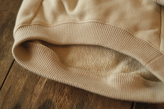 厚さ、伸縮性は一般的なトレーナーと同じ程度です。