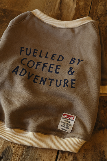 モカボディにそれぞれネイビーで手描き感のあるラフなプリントを施した