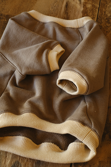 袖口や裾のリブには共にナチュラルなキナリ色を配し、