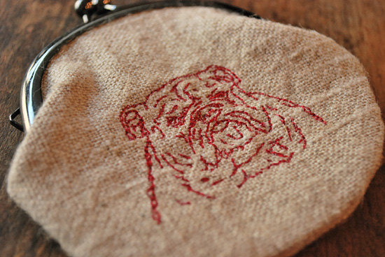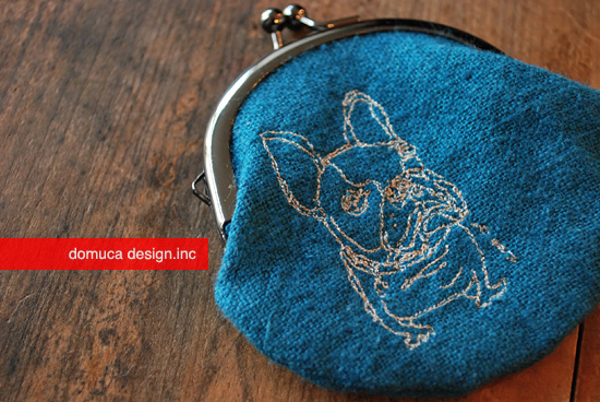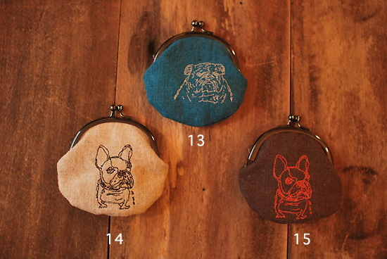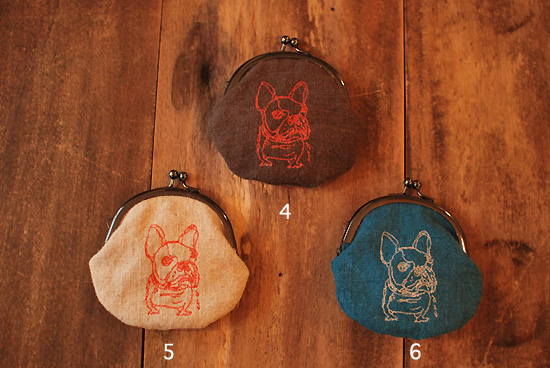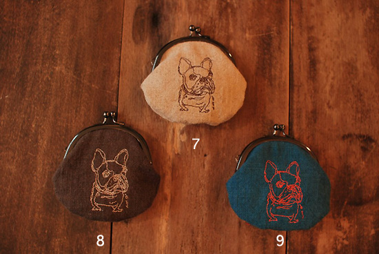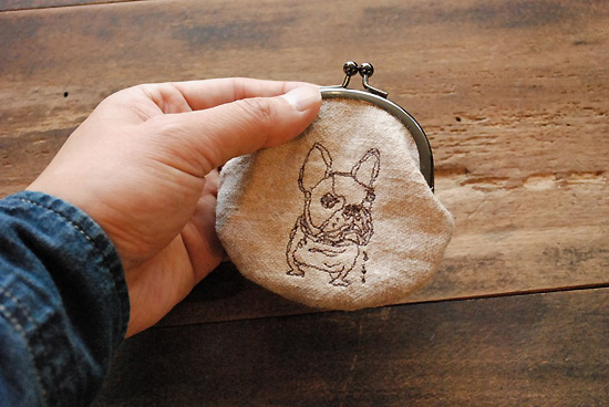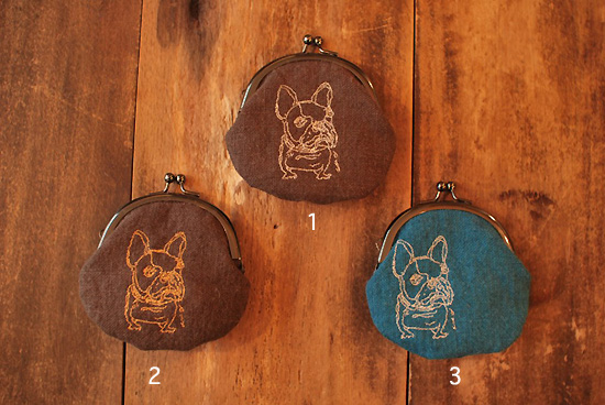 ぷくっとした形に細い線で描かれたフレンチブルドッグやブルドッグが刺しゅうされています。