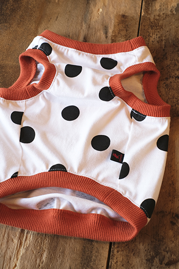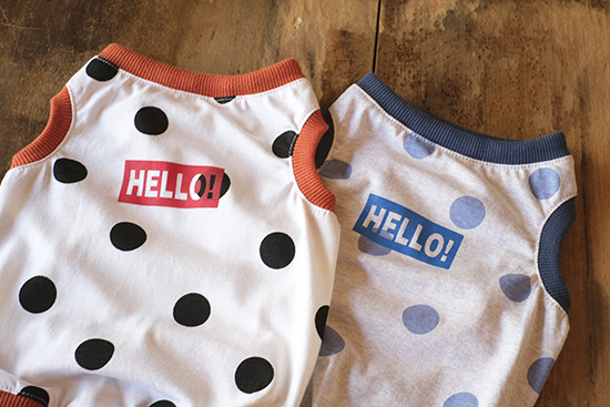 爽やかな水玉模様の天竺生地のタンクトップ。
