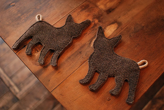 厚手のフェルト製によるフレンチブルドッグのシルエットコースター。