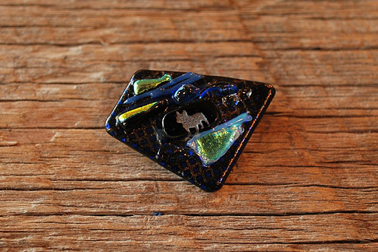 フューズドグラスにサンドブラストでフレンチブルドッグのシルエットが彫り込まれています。