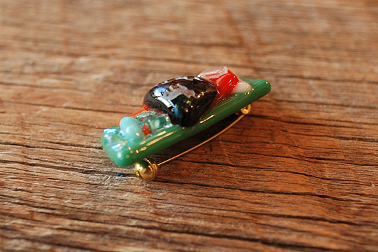 フレンチブルドッグのグラスブローチ(No.2 グリーン)