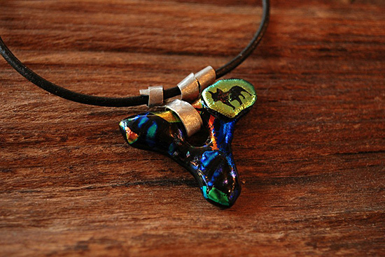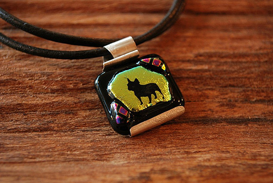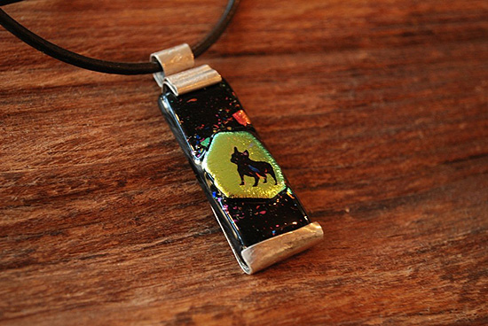 フューズドグラスにサンドブラストでフレンチブルドッグのシルエットが彫り込まれています。