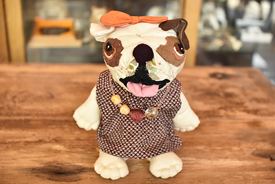 布で作られた表情豊かなぬいぐるみたち。