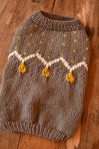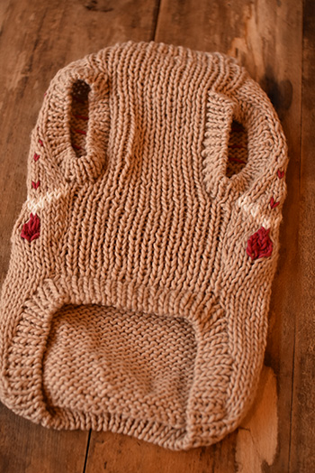 極太の糸でざっくりと編まれたドッグセーターです。