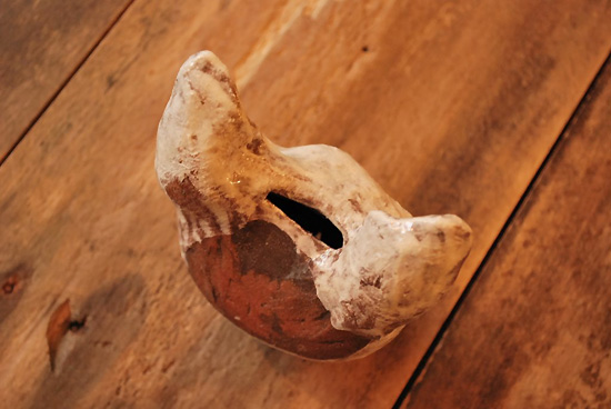豪快で個性的に仕上げられた一点ものの陶器製の壁飾りです。