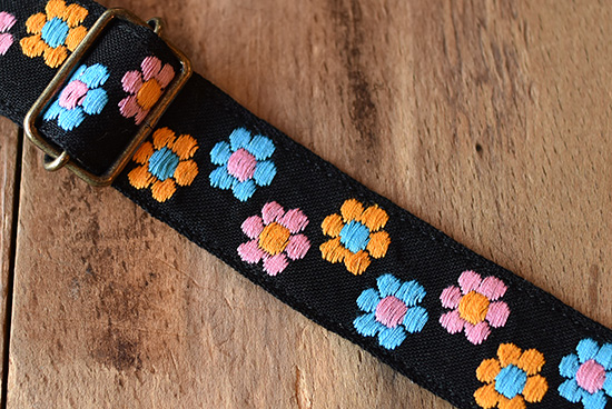 黒地にピンク、水色、オレンジの3色でそれぞれ刺繍された