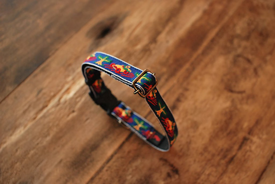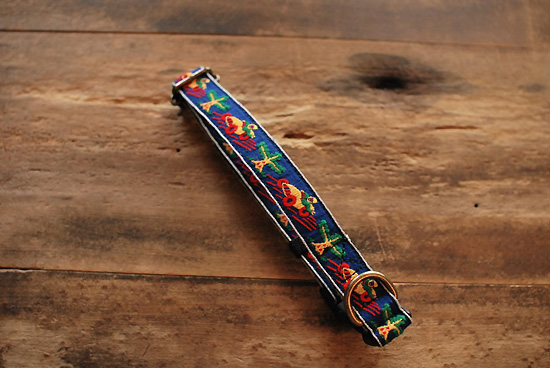 海外の買い付け品を贅沢に使った数量限定生産の首輪です。