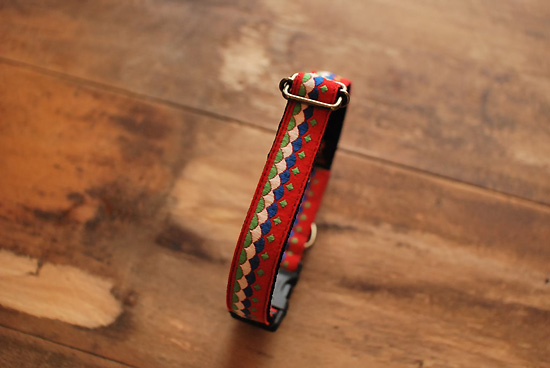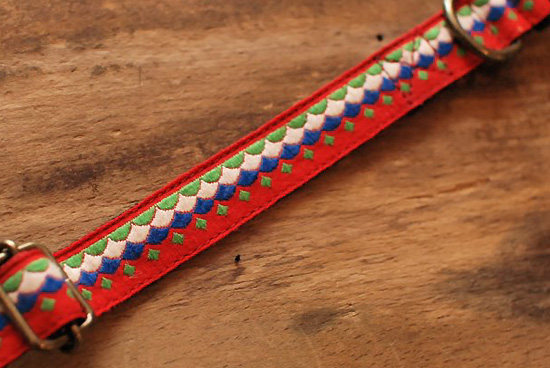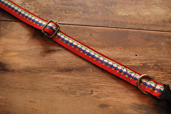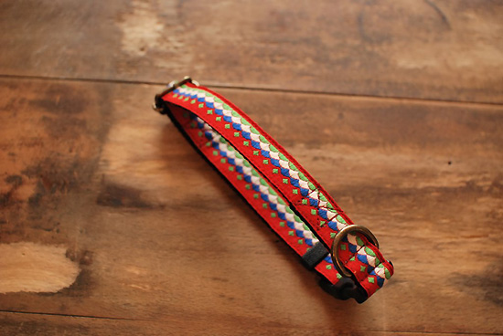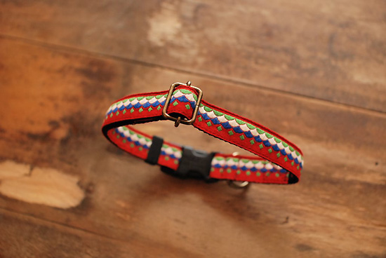 海外の買い付け品を贅沢に使った数量限定生産の首輪です。