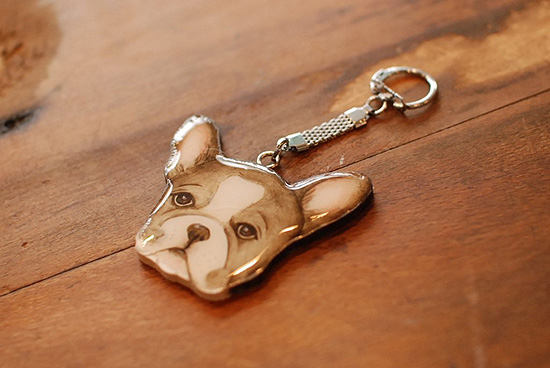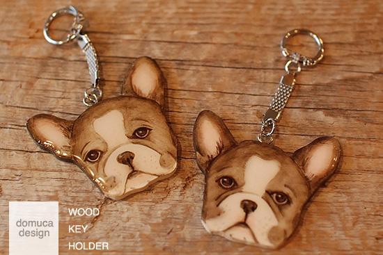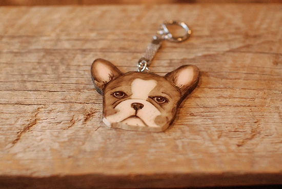 フレンチブルドッグの木製キーホルダー