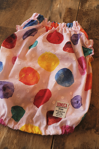 色とりどりの水玉模様がプリントされています。