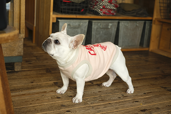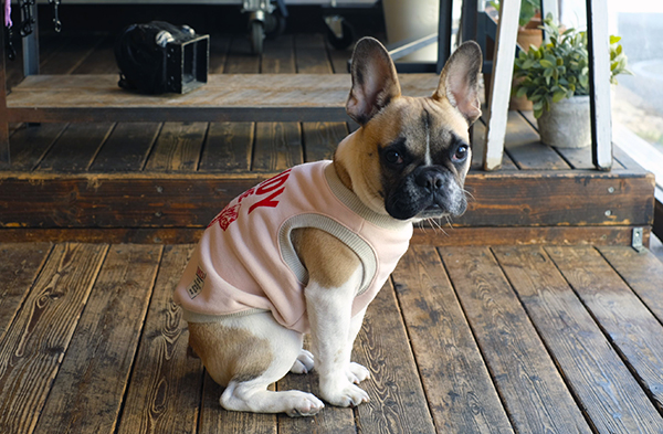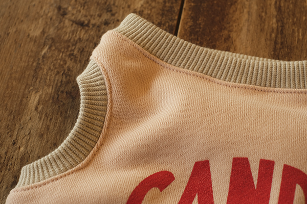 淡いサーモンピンクのスウェット地のタンクトップです。