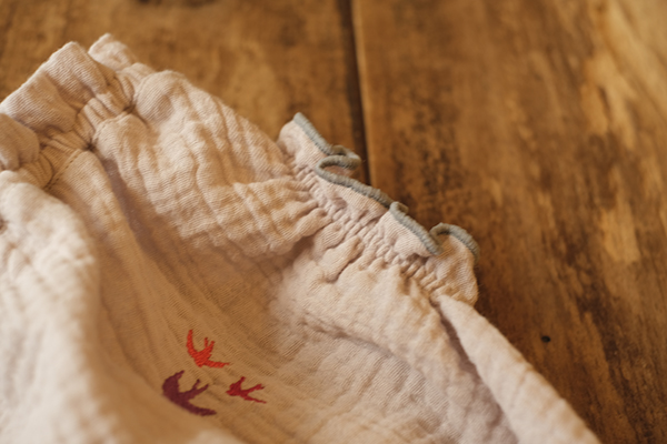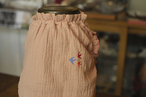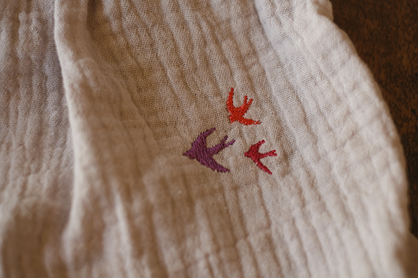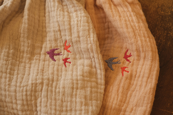 3色のつばめのシルエット刺繍が、