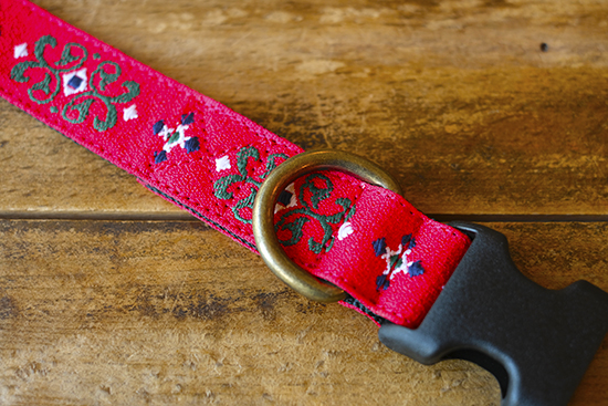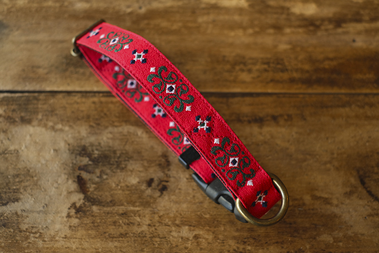 海外の買い付け品を贅沢に使った数量限定生産の首輪です。