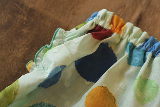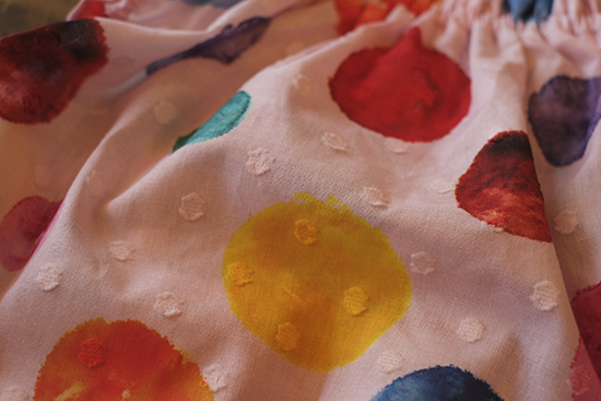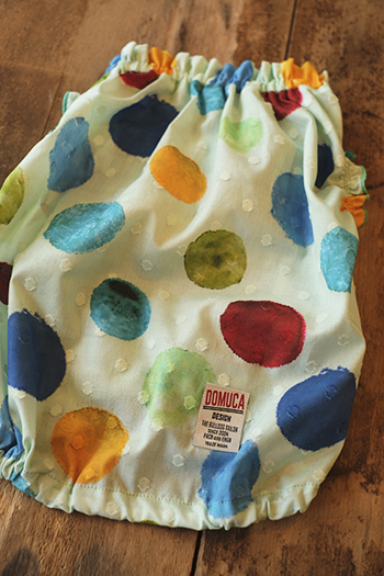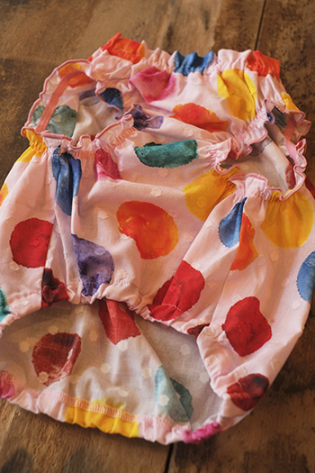 色とりどりの水玉模様がプリントされています。